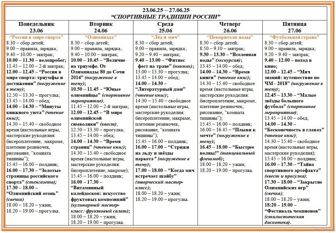 На этой неделе ребят ждет много спорта! ⚽ Ведь она посвящена именно спортивным традициям нашей страны🏏