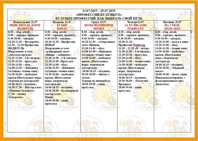 Поход в кино, модный показ, творческие мастерские, фольгированное шоу и дискотека.