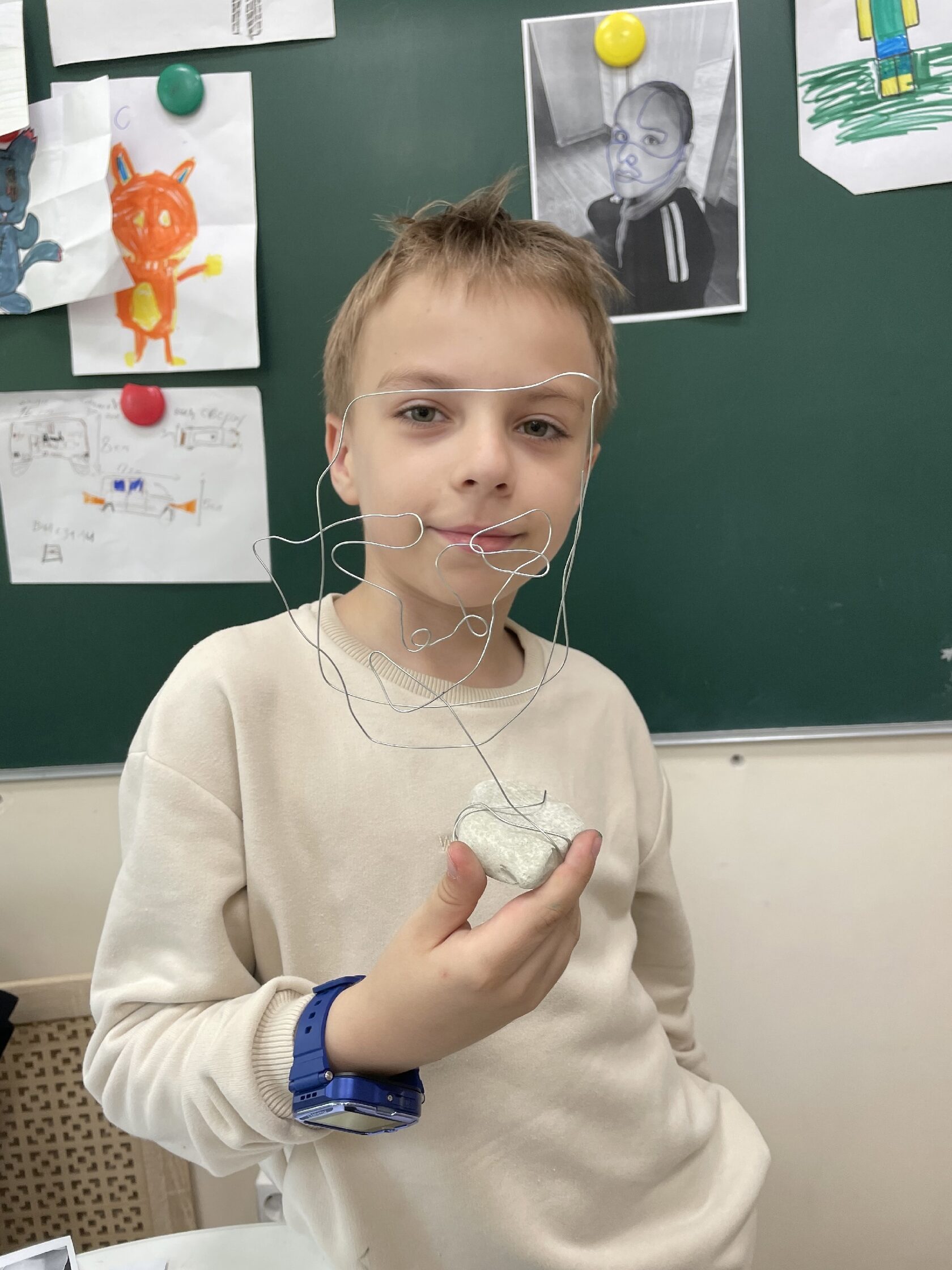 ✨На мастер-классе по дизайну дети работали в технике «Изогнутое лассо» — создавали интерьерные украшения из проволоки и камня по собственным фотографиям.